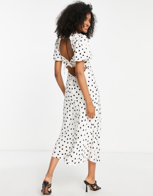Mango v neck puff sleeve polka dot midi dress in white ASOS Very well made.