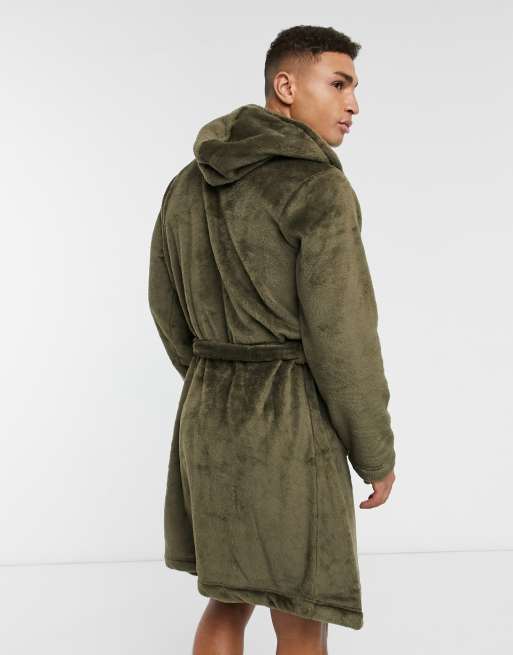 ASOS DESIGN lounge hooded dressing gown in khaki fleece Very well made.
