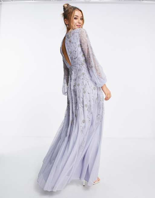 ASOS DESIGN floral embellished mesh godet maxi dress in lilac Very well made.