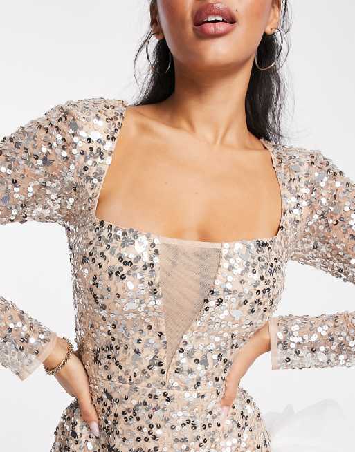 ASOS LUXE tulle hem embellished skater mini dress in blush Very well made.