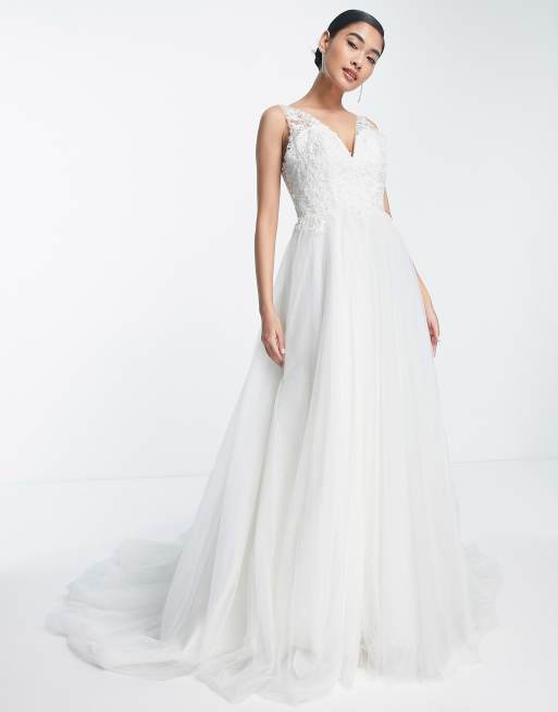 ASOS DESIGN Tiana delicate embroidered bodice wedding dress with V Very well made.