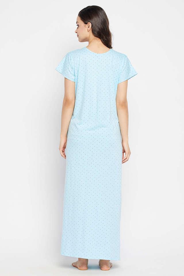 Dot Print Long Night Dress in Sky Blue Cotton Very well made.
