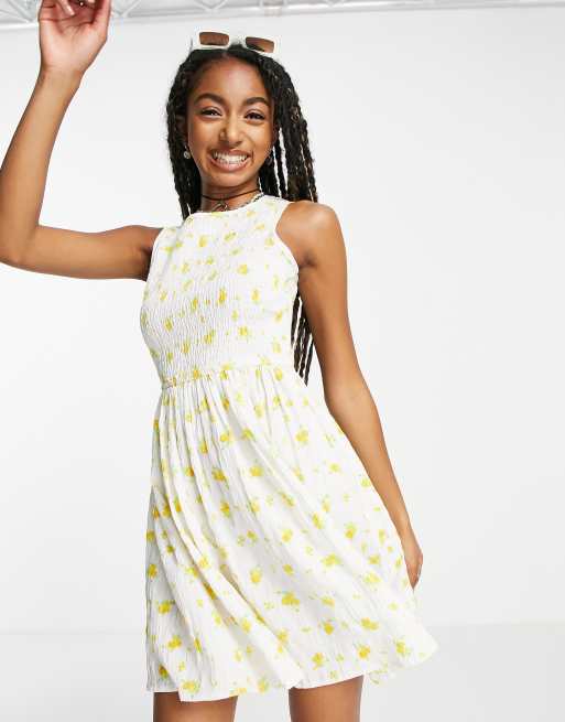 Daisy Street mini smock dress with shirring detail in white yellow ditsy floral Very well made.