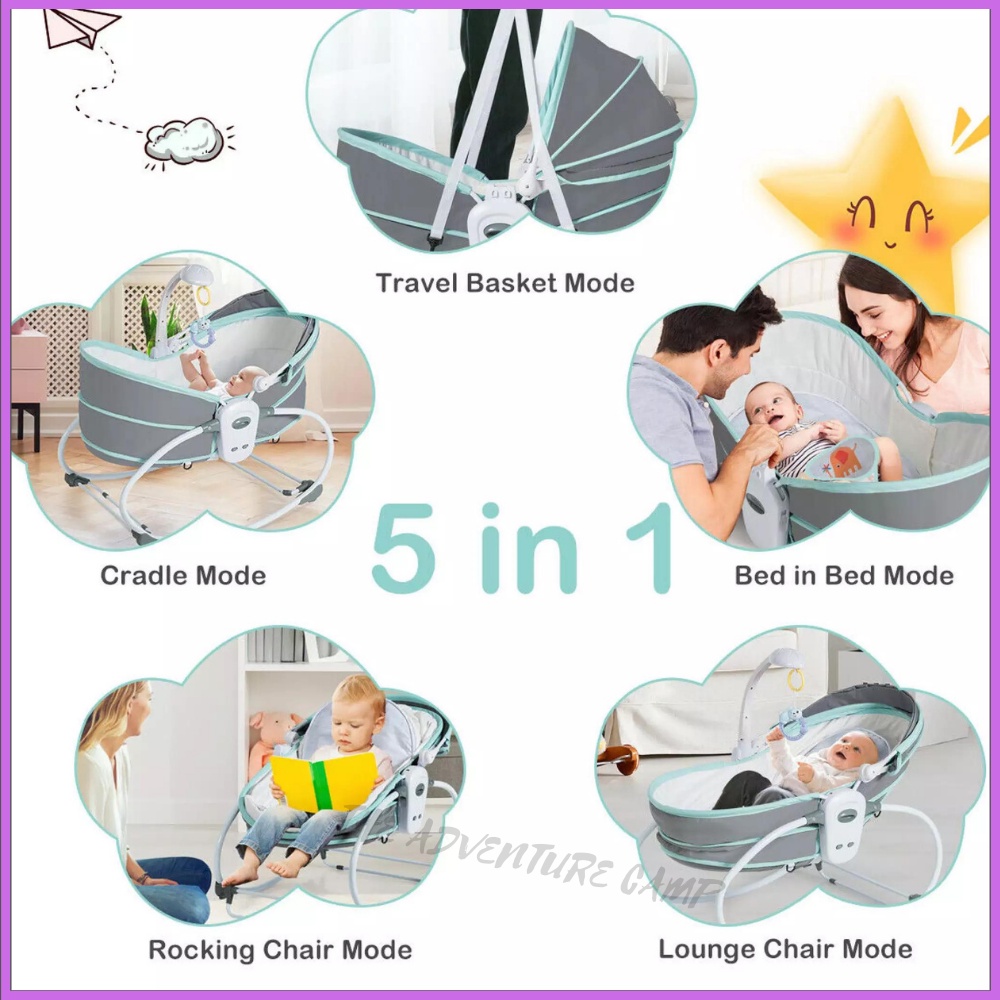 5 in 1 Baby Rocker Bassinet Travel Swing Crib with Music and Very well made.
