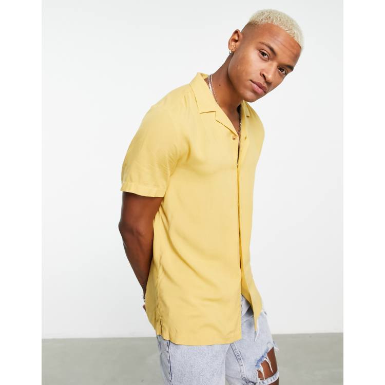 ASOS DESIGN regular revere viscose shirt in mustard Very well made.