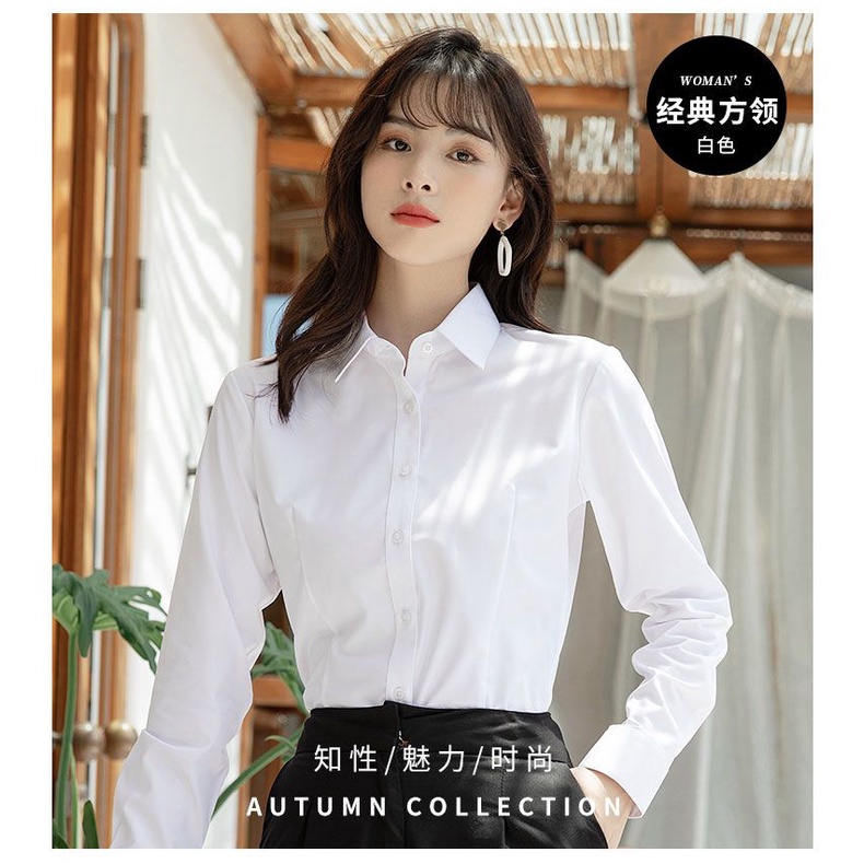 long sleeves white polo Collar blouse for women plus size korean Very well made.