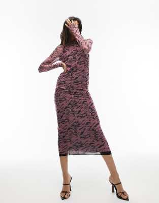 Topshop overlocked long sleeve midi dress in pink animal print ASOS Very well made.