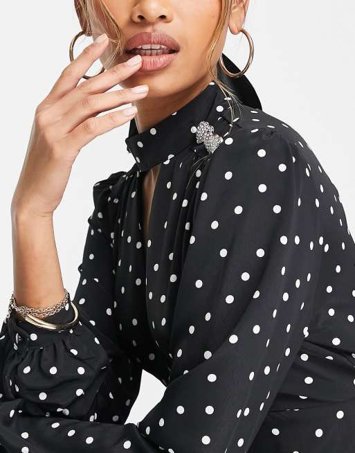 River Island midi dress in black polka dot with heart button detail Very well made.