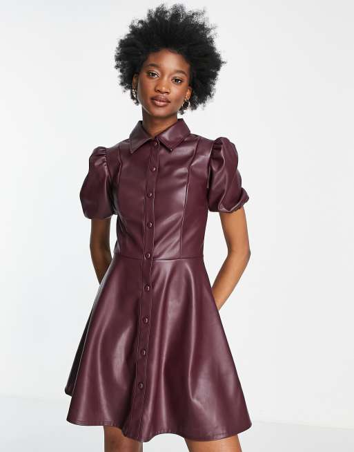 Miss Selfridge faux leather button through shirt dress in burgundy Very well made.
