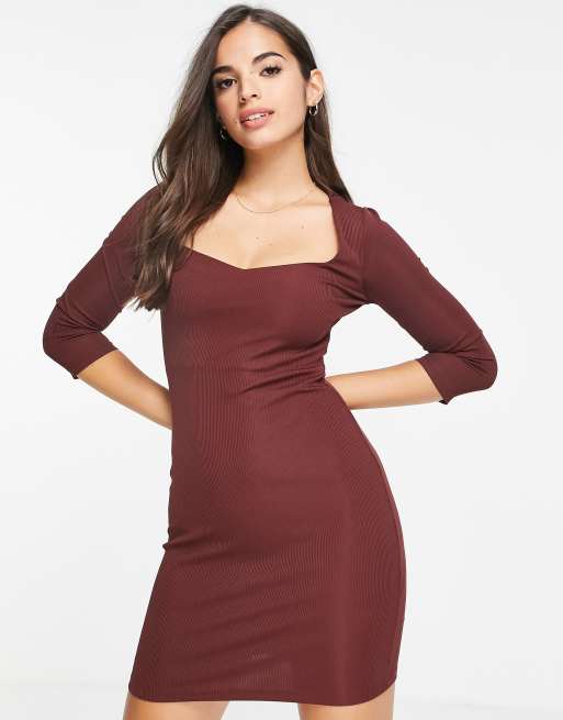 Miss Selfridge sweetheart rib mini dress in burgundy Very well made.