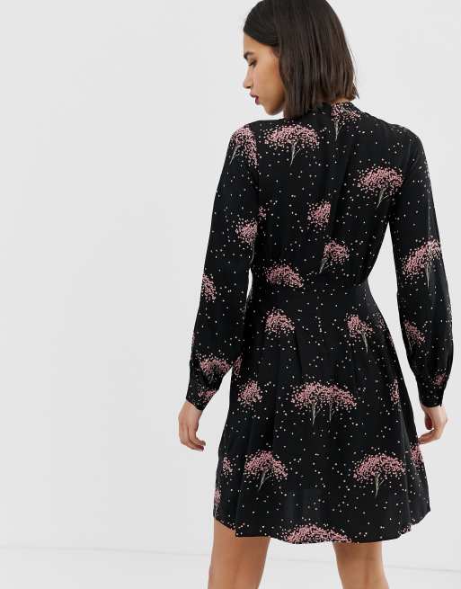 Warehouse Star Tree Printed Dress Size 6 NWT Black Pink Long Sleeves Very well made.