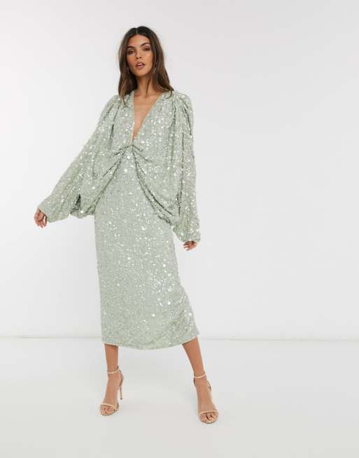 ASOS EDITION Midikleid mit Kimono rmeln drapierter R ckseite und Pailletten Very well made.