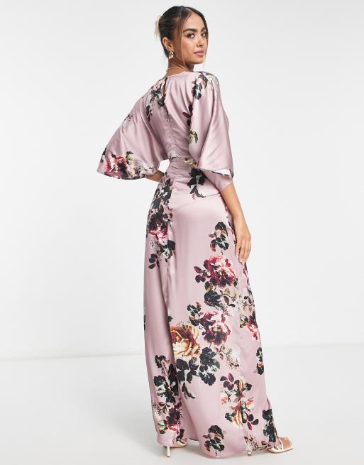 Hope Ivy kimono sleeve satin maxi dress in mauve Very well made.