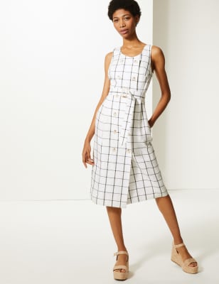 Pure Linen Checked Waisted Dress M S Collection M S Very well made.