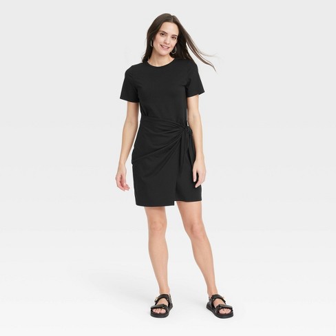 Women s Short Sleeve Mini T Shirt Wrap Dress A New Day Black XS Very well made.