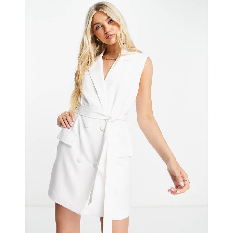 White Double Breasted Sleeveless Tuxedo Dress Very well made.