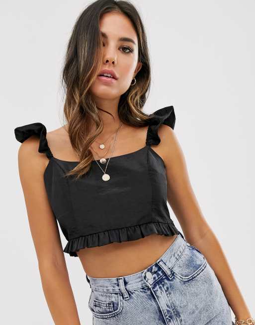 ASOS DESIGN cropped top with frill shoulder Very well made.