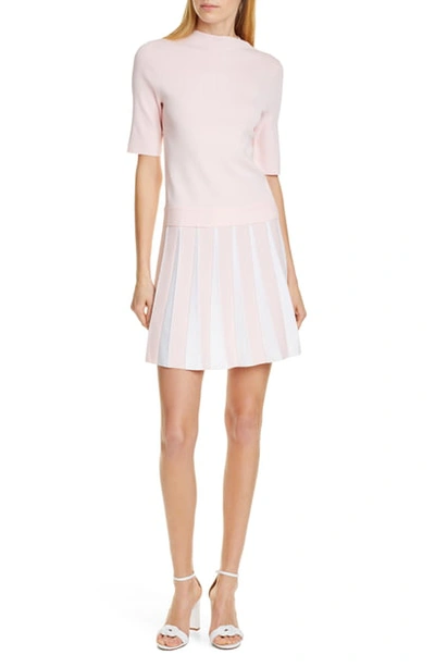 Ted Baker Hethia Pleat Skirt Knitted Skater Dress Size 1 US 4 White Navy Very well made.