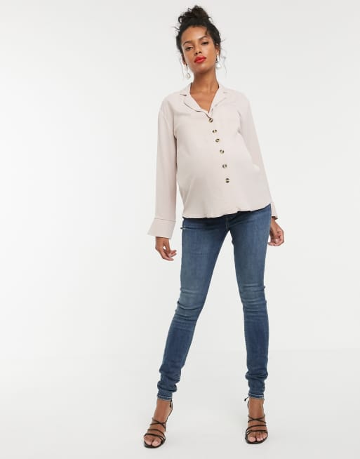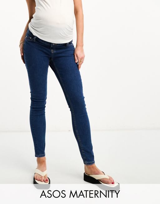 ASOS DESIGN Maternity skinny jeans in mid blue with over the bump waistband Very well made.