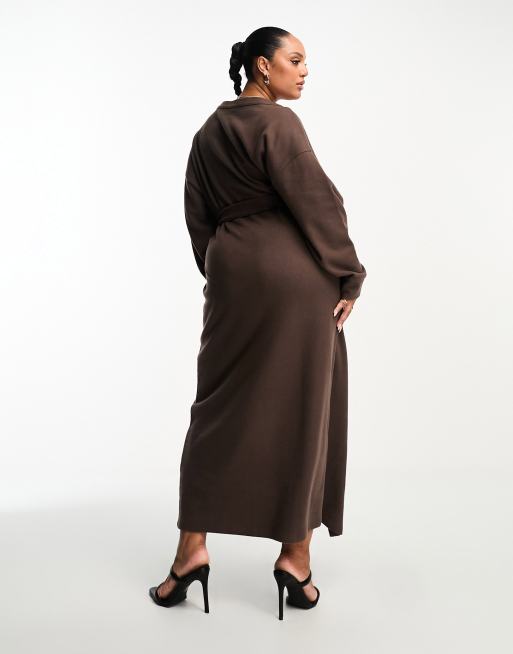 ASOS DESIGN Curve supersoft button through maxi cardigan belted dress in chocolate Very well made.