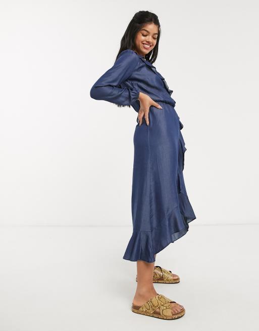 ASOS DESIGN denim wrap dress with frill detail ASOS Very well made.