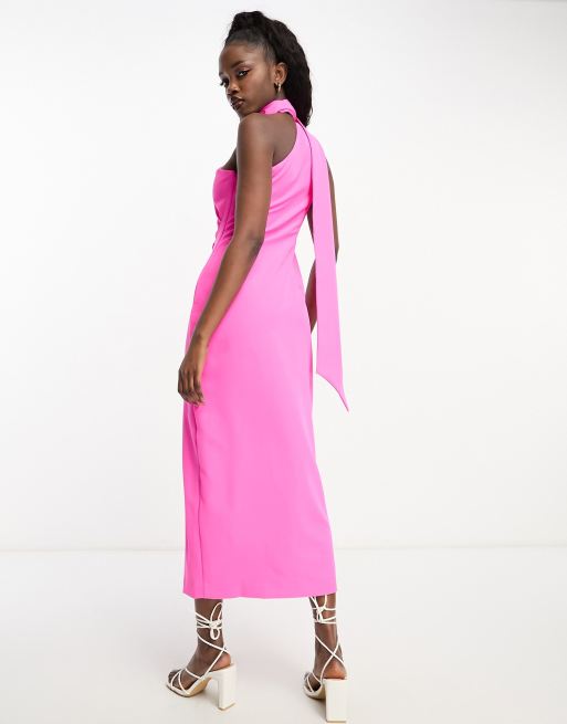 Forever New satin neck wrap split midi dress in vivid pink ASOS Very well made.