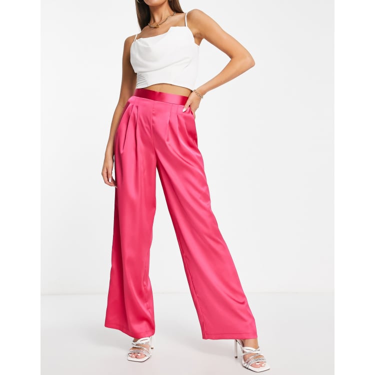 ASOS DESIGN satin pants with pleat detail in hot pink ASOS Very well made.
