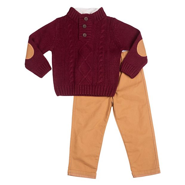 Baby Boy Little Lad Burgundy Funnel Neck Cable Knit Sweater Very well made.