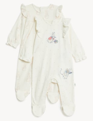 2pk Cotton Blend Peter Rabbit Sleepsuits M S FR Very well made.