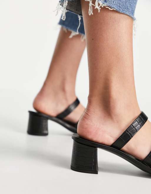 ASOS DESIGN Wide Fit Hester premium leather mules in black croc Very well made.