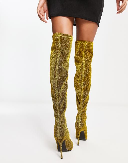 Gold Sequin Point Toe Over The Knee Heeled Boots PrettyLittleThing Very well made.