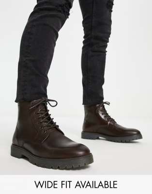 ASOS DESIGN lace up boots in brown leather with chunky sole Very well made.