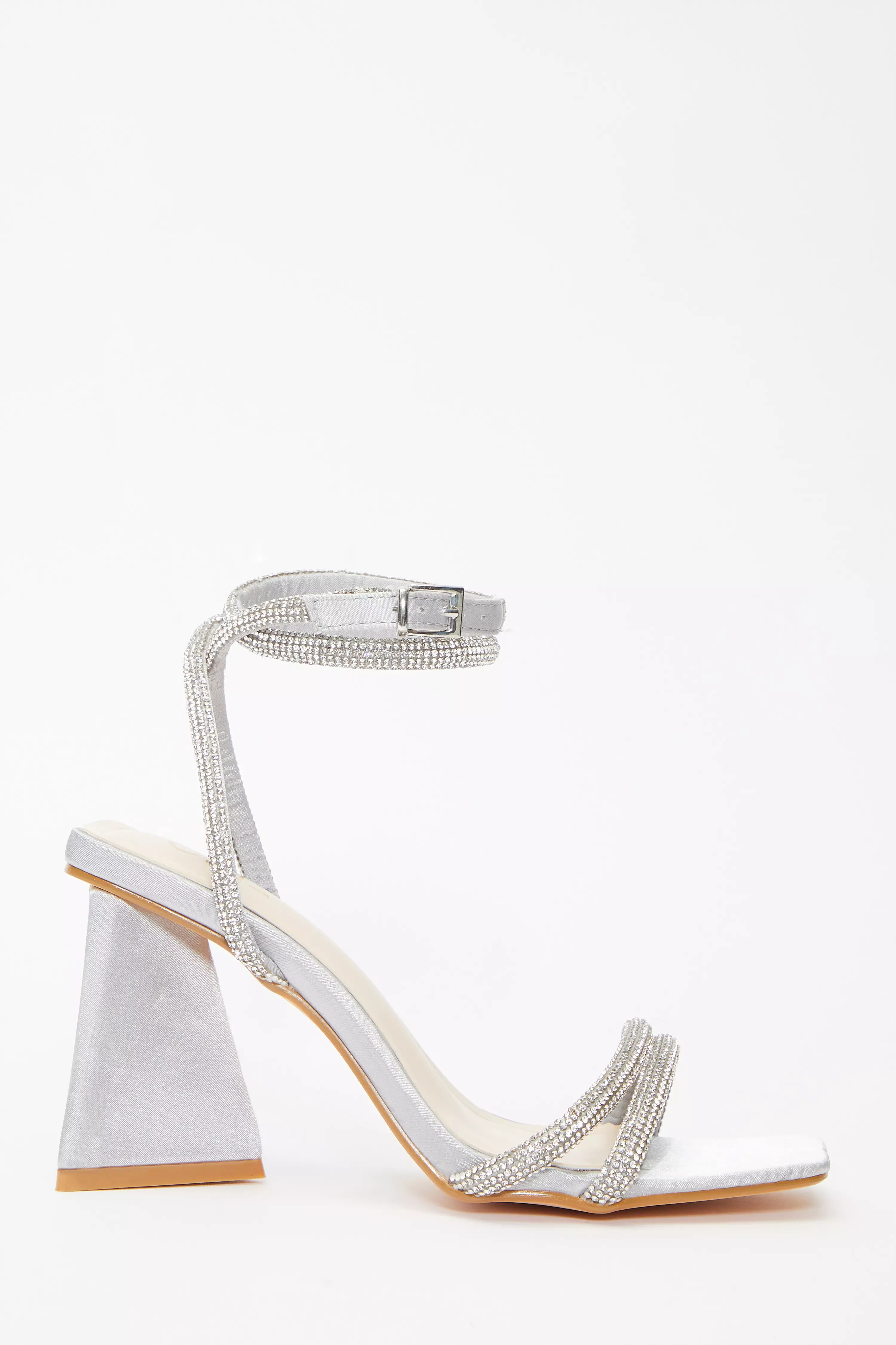 Grey Satin Diamante Triangle Heeled Sandals QUIZ Very well made.