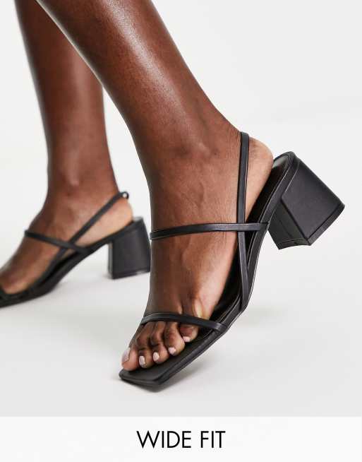 ASOS DESIGN Wide Fit Hamper strappy mid heeled sandals in black Very well made.