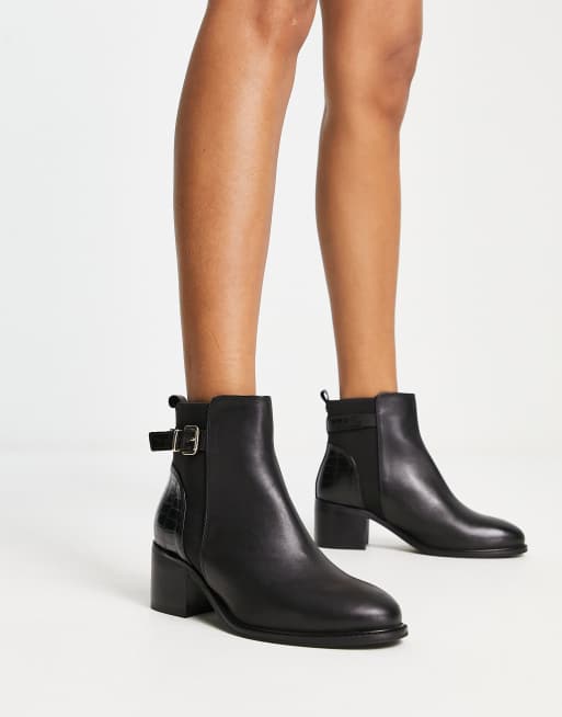 Dune London Poet Black Block Heel Ankle Strap Boots Kaleidoscope Very well made.