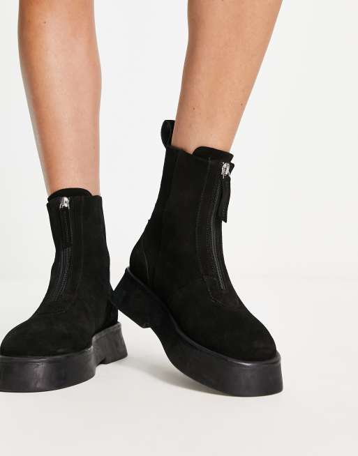 ASOS DESIGN Wide Fit Region suede mid heel boots in black Very well made.