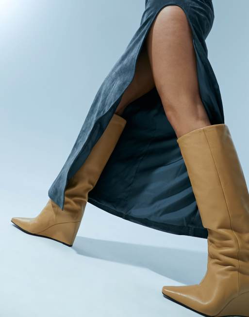ASOS DESIGN Cali premium leather wedge knee boots in camel Very well made.