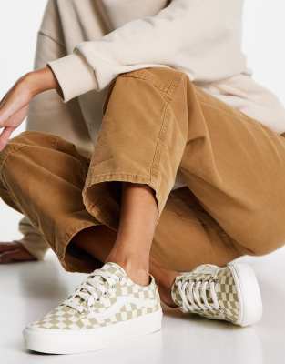 Vans Old Skool tapered theory checkerboard trainers in brown Very well made.