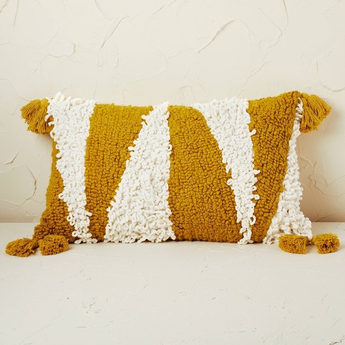 Oversized Tufted Shag Geometric Patterned Lumbar Throw Pillow Gold Very well made.