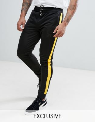 Premium Side Stripe Zip Pocket Track Pants Black Yellow Very well made.