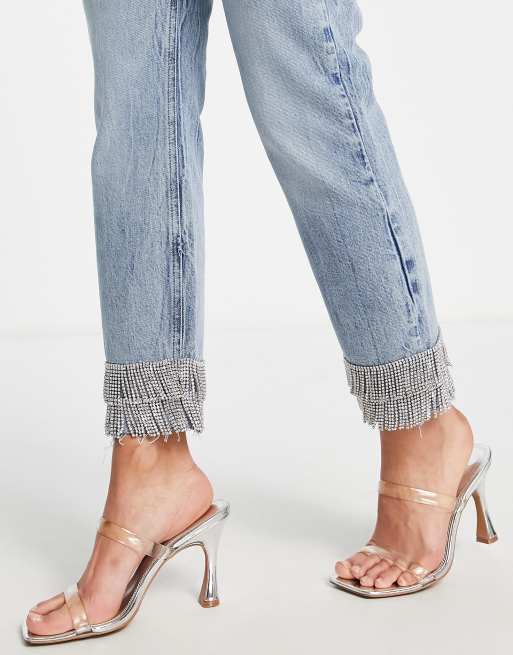 River Island Embellished relaxed straight jeans in denim medium Very well made.