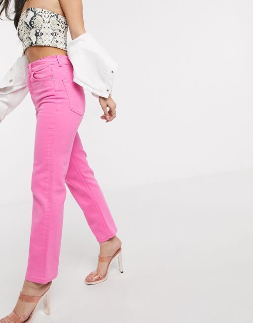 ASOS DESIGN high rise Stretch straight jeans in bubblegum pink Very well made.