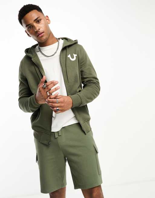 True Religion oversized buddha graphic zip hoodie in olive green Very well made.