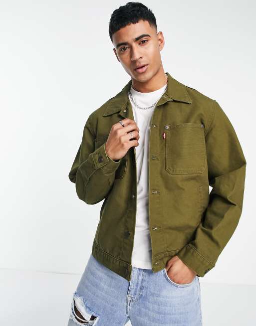 Levi s stock denim trucker jacket in olive green ASOS Very well made.