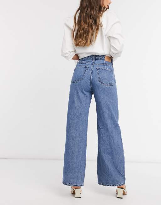 Weekday Ace cotton high waist wide leg jeans in mid blue MBLUE Very well made.
