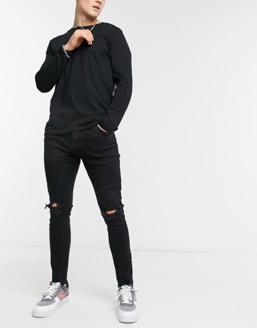 Bershka super skinny jeans with rips in dark blue Very well made.