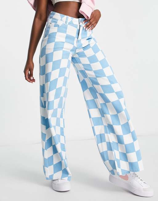 Vans Range print relaxed checkerboard trousers in blue and white Very well made.