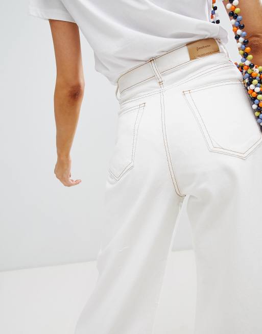 Bershka high waisted contrast stitch baggy cargo jeans in white Very well made.