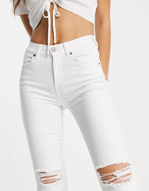 Dr Denim Macy high waisted ripped knees flare jeans in white Very well made.