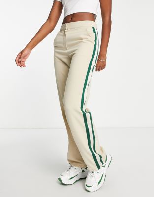 ASOS DESIGN wide leg side stripe trousers in cream Very well made.